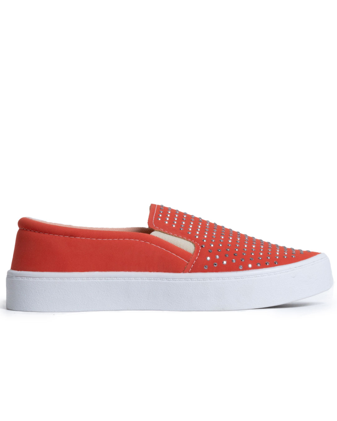 Descubra o equilíbrio perfeito entre sofisticação e conforto com nosso mais recente tênis slip-on. Este calçado apresenta um design minimalista em um tom vermelho suave, complementado por uma textura sutil em relevo que adiciona um toque de elegância discreta. O ícone da marca, posicionado com destaque na palmilha, simboliza a qualidade e o estilo que você espera. Com uma sola robusta e uma construção sem cadarços para facilidade ao calçar, estes tênis são a escolha ideal para quem busca praticidade sem abrir mão do estilo.